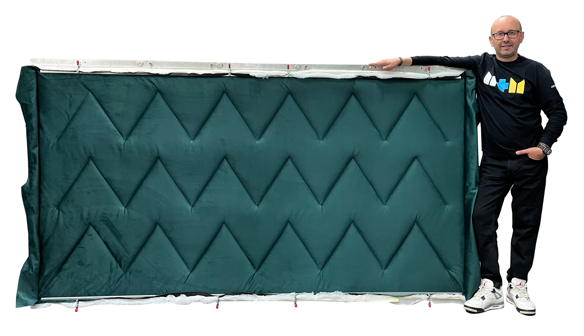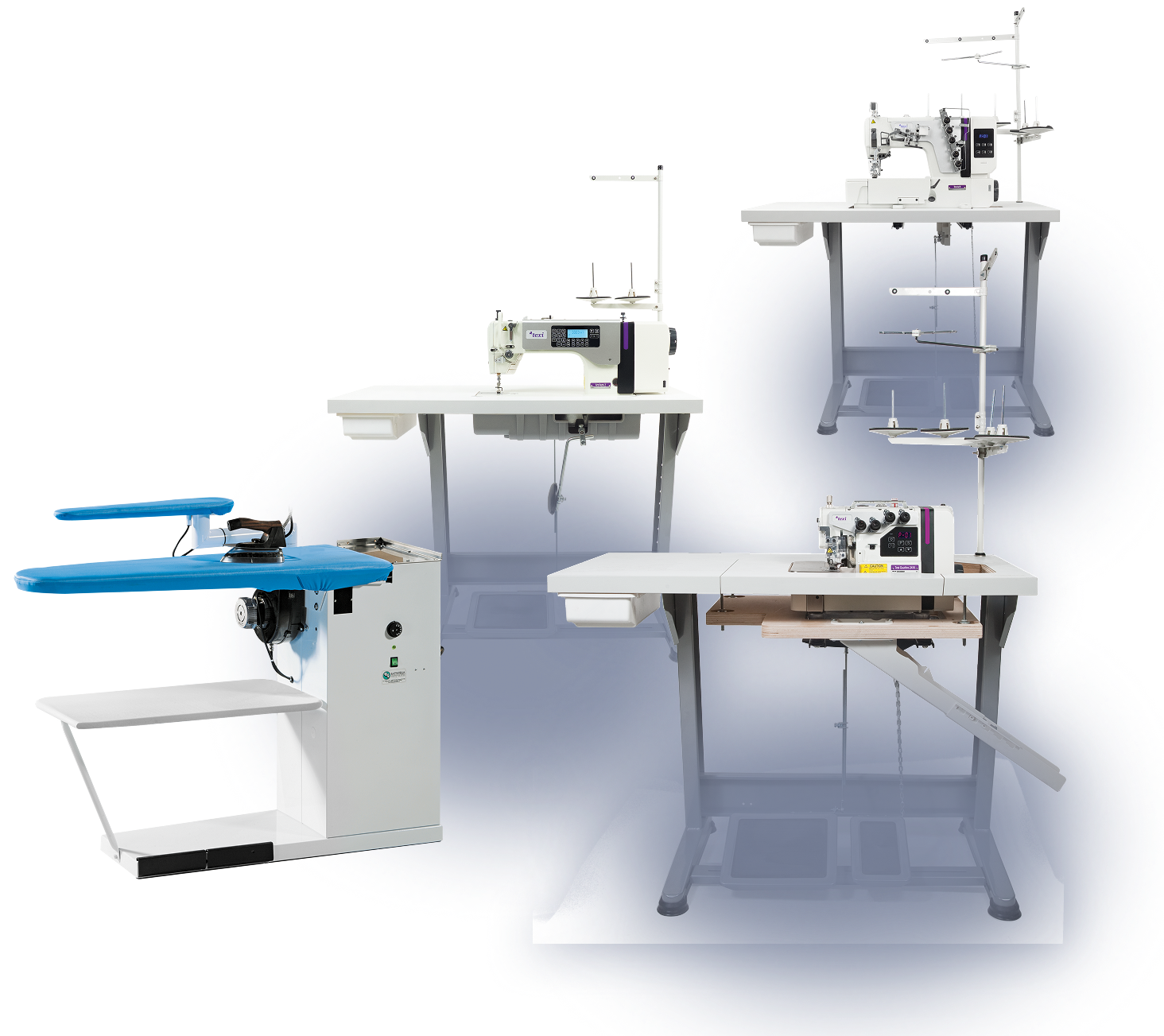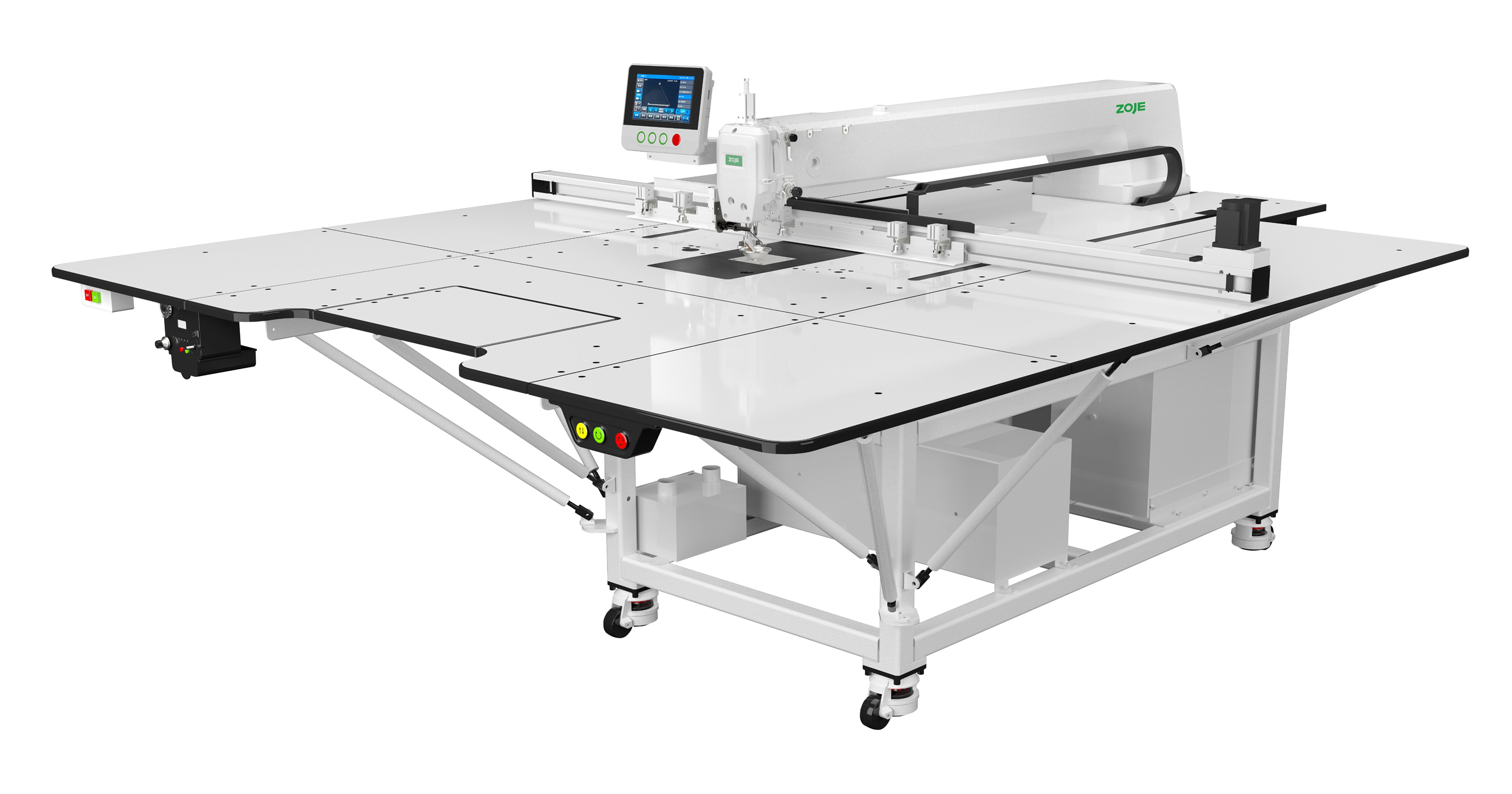 Maszyna do stebnowania programowanych wzorów. Automat szwalniczy o bardzo dużym polu pracy, z podnoszoną głowicą szyjącą oraz niezależnymi napędami